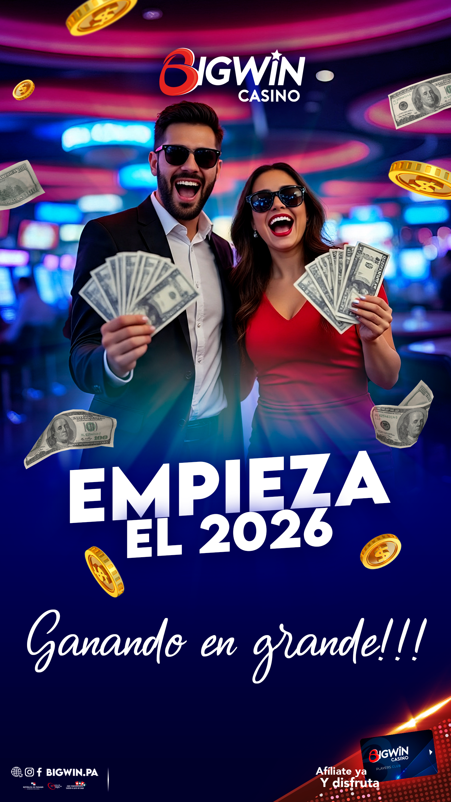 Inscríbete en nuestro Big Win Players Club y recibe un bono de $3 para empezar a jugar en maquinitas. Acumula puntos cada vez que la utilices, los cuales puedes cambiar por tickets promocionales, según la tabla de valores, para que puedas continuar con la diversión, además de participar en tómbolas por premios especiales y efectivo.