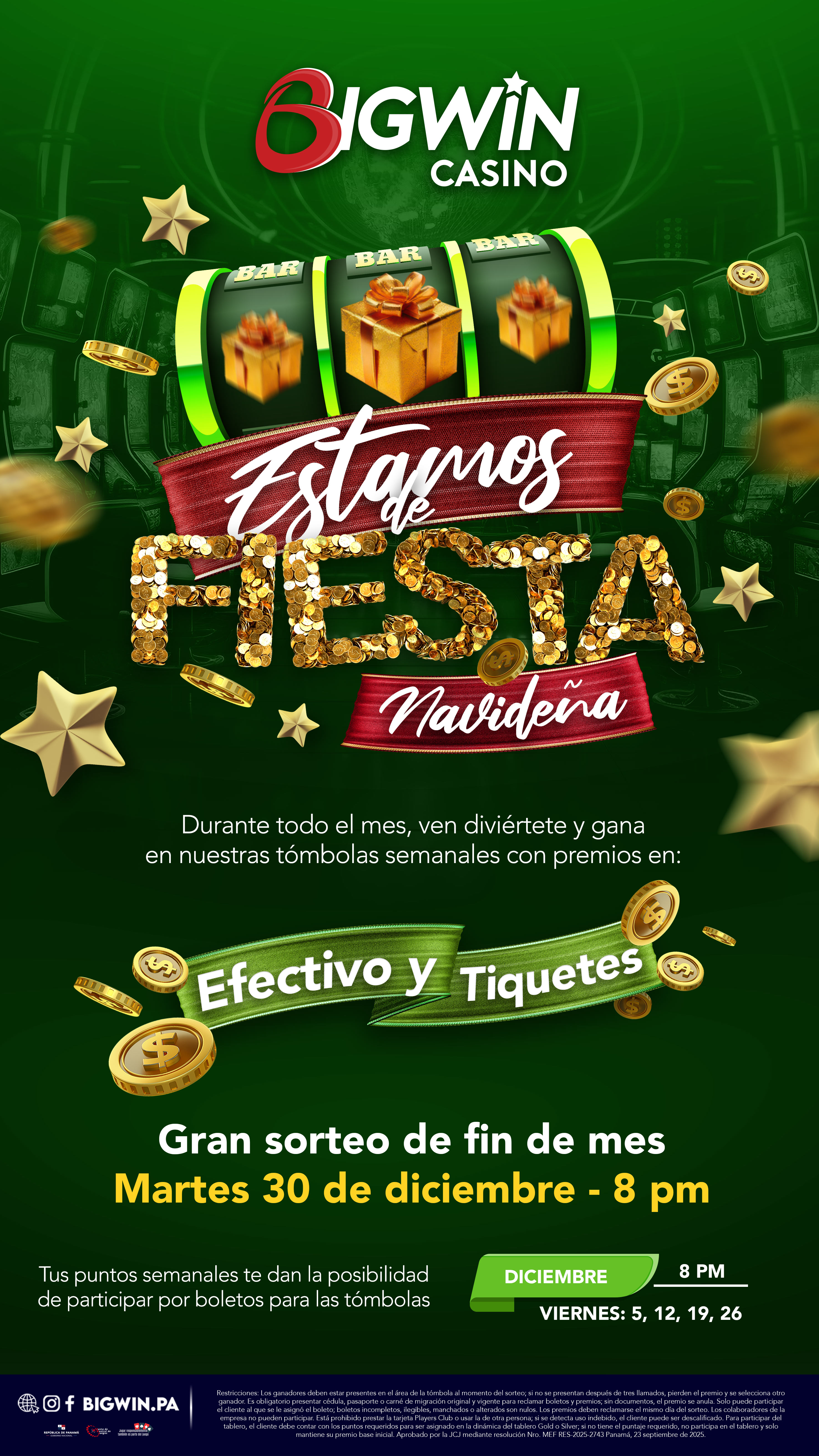 Inscríbete en nuestro Big Win Players Club y recibe un bono de $3 para empezar a jugar en maquinitas. Acumula puntos cada vez que la utilices, los cuales puedes cambiar por tickets promocionales, según la tabla de valores, para que puedas continuar con la diversión, además de participar en tómbolas por dinero en efectivo.
